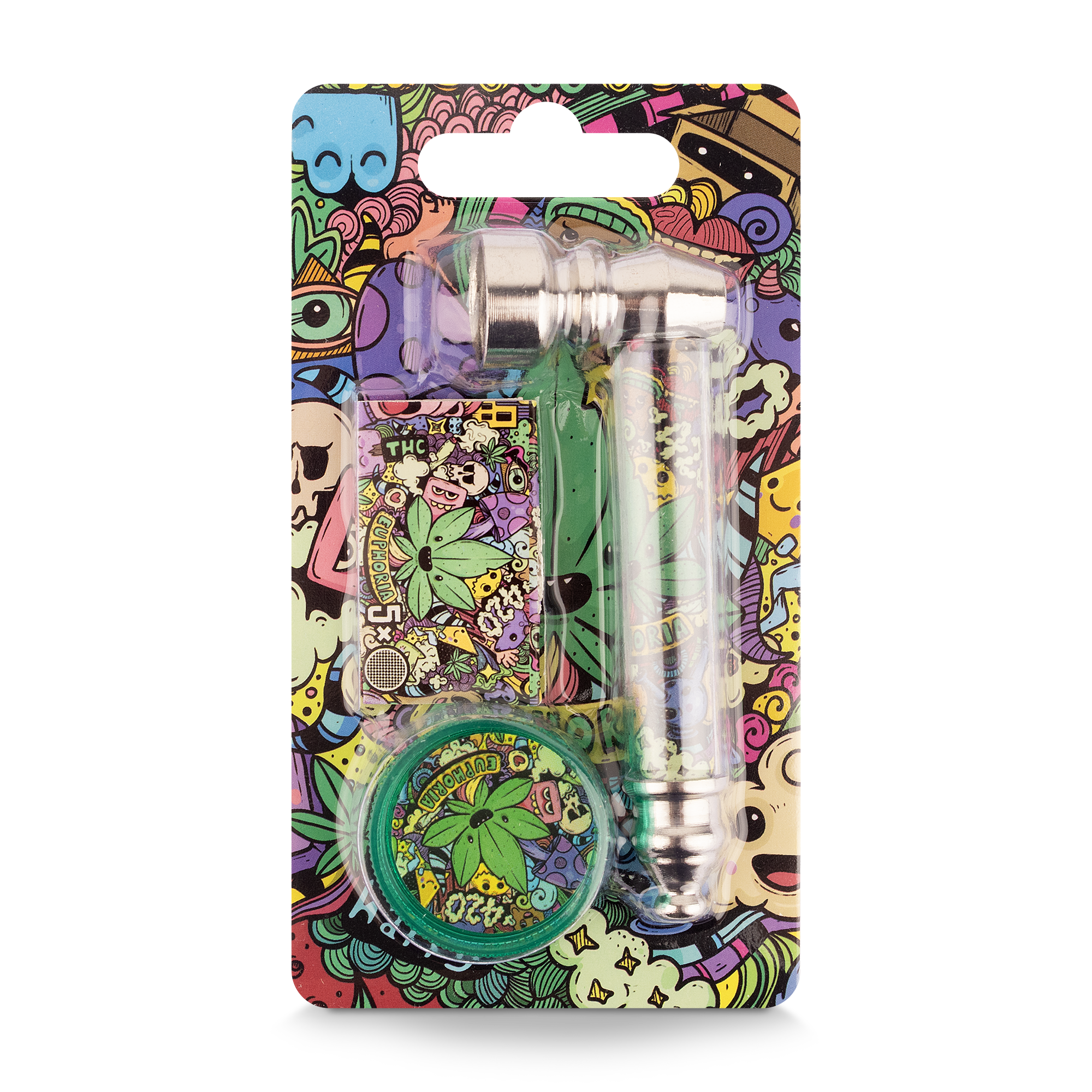 Najważniejsze cechy produktu • Zestaw 3‑w‑1: metalowa fajka, mini młynek, 5 sitek. • Wygodny i kompaktowy – idealny w domu i w podróży. • Trwała konstrukcja z metalu odpornego na wysokie temperatury. • Mini młynek zapewnia równomierne rozdrobnienie suszu. • Sitka filtrujące poprawiają smak i ograniczają zanieczyszczenia. • Łatwy w czyszczeniu i ponownym montażu. • Doskonały pomysł na prezent dla każdego palacza.